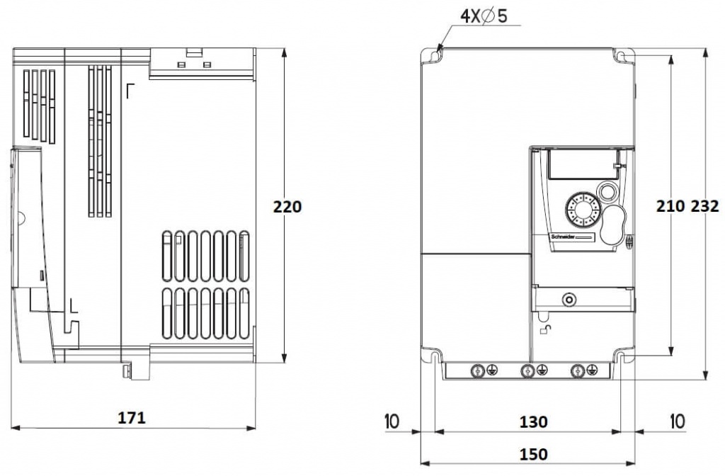 - Режимы управления электродвигателем: векторный без датчика обратной связи (SVC) и скалярный (V/f);
