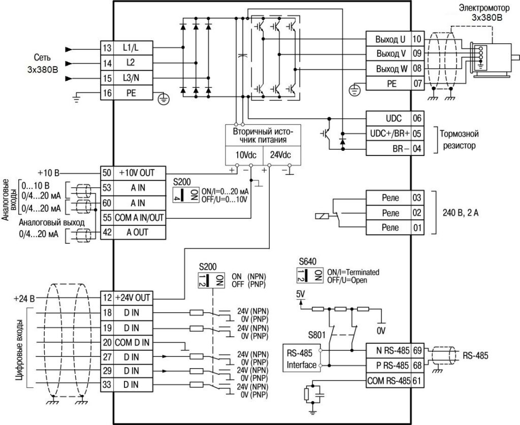 - Входное напряжение (частота): 3 фазы, 380…480В (50/60Гц)