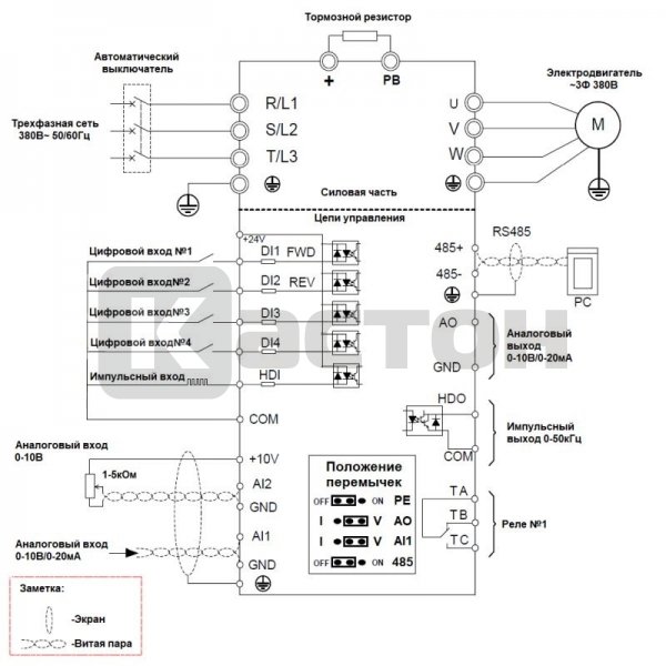- Питание: 1×380 В (-15…+10 %);