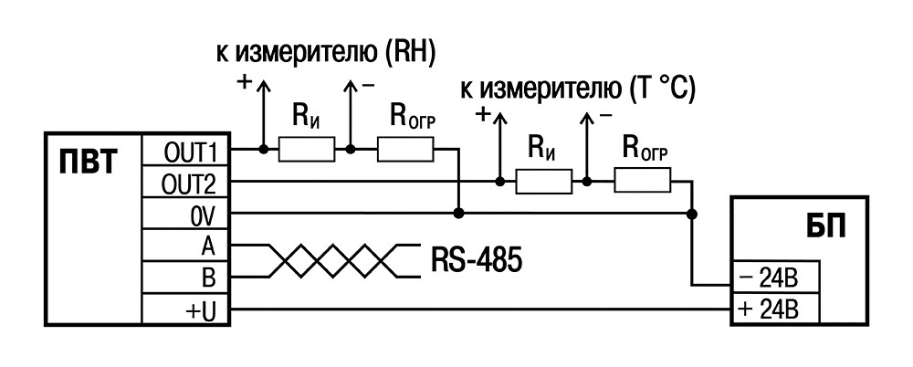 - Комбинированный выходной сигнал: два канала 4…20 мА + RS-485 (Modbus RTU).