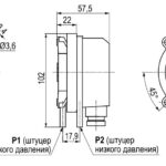 - Конструктивные параметры: расположение оси крепежного отверстия прибора: вертикально, штуцерами вниз;