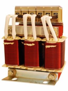 Сетевые дроссели (реакторы) применяются в силовых цепях преобразователей частоты для повышения их коэффициента мощности, снижения взаимного влияния нескольких преобразователей частоты при их параллельном питании, ограничения скорости нарастания пусковых токов и снижения гармоник сетевого напряжения. Установка сетевого дросселя желательна при любом качестве питающей сети. Сетевой дроссель защищает ПЧВ от провалов и наводок из сети, а также защищает сеть от выбросов преобразователем частоты гармоник высокого порядка. Значение индуктивности соответствует падению напряжения от 3 до 5 % номинального напряжения сети.