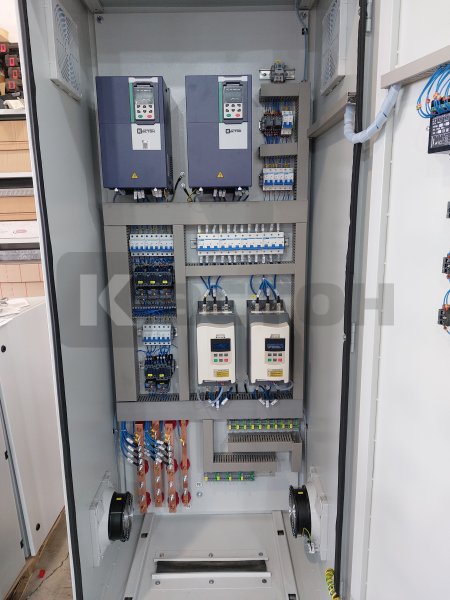 - Пуск напрямую от сети 4-х вентиляторов, мощностью 1,63кВт каждый и 1-го насоса 7.5кВт в ручном режиме;