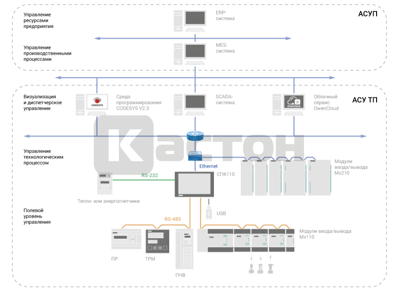 Modbus RTU/ASCII (Master/Slave), ОВЕН (Master), тепло/электросчетчиков