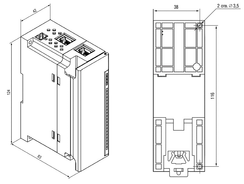 - Монтаж: на DIN-рейку / на стену;