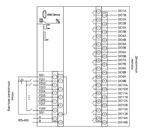 - Дискретные выходы (DO) типа электромагнитное реле: 14;