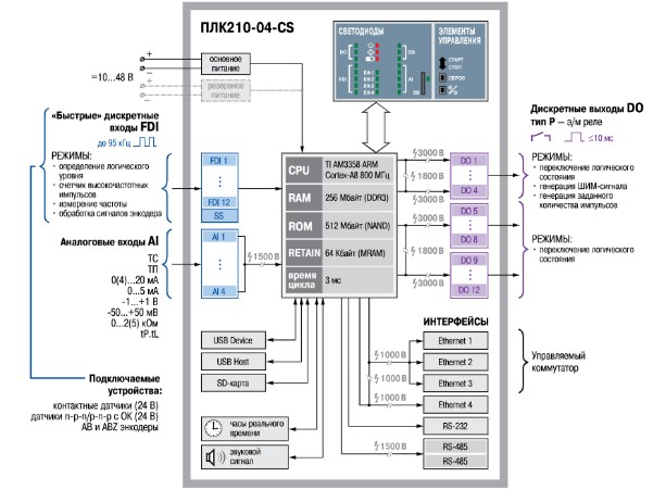 - Большой объем памяти: ROM 512 Мбайт (NAND), RAM 256 Мбайт (DDR3), RETAIN 64 Кбайт (MRAM).