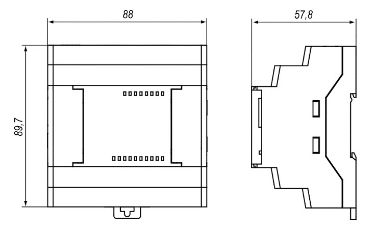 Прибор изготавливается в автоматном корпусе 5 DIN. Имеет на борту аналоговые и дискретные входы, а также дискретные выходы. Для управления устройствами по сети или передачи данных на верхний уровень в приборе предусмотрен интерфейс RS-485.