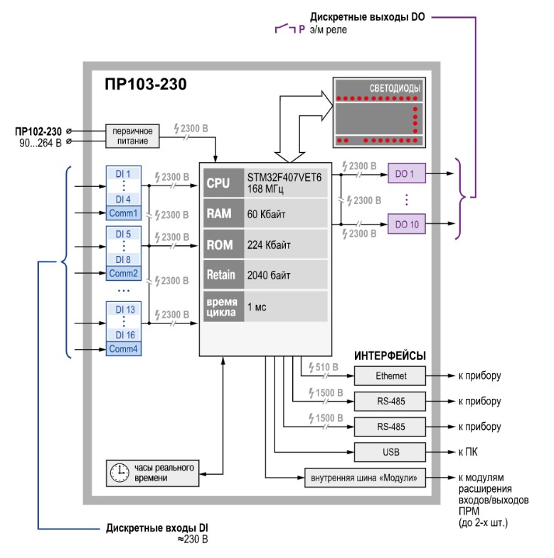 - Увеличение каналов ввода/вывода до 66 шт. с помощью модулей ПРМ.
