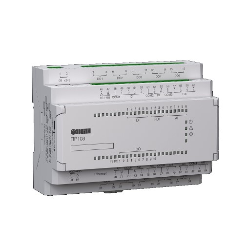 Для расширения собственных входов/выходов предусмотрено подключение по внутренней шине модулей расширения ПРМ. Написание алгоритма осуществляется пользователем на языке FBD с помощью бесплатной среды программирования Owen Logic.