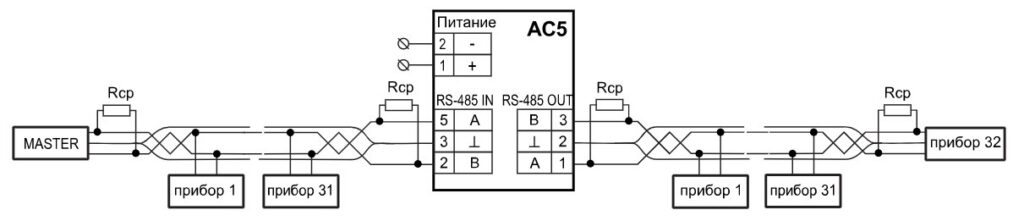 - Использование линий связи RS-485 длиной более 1200 метров.