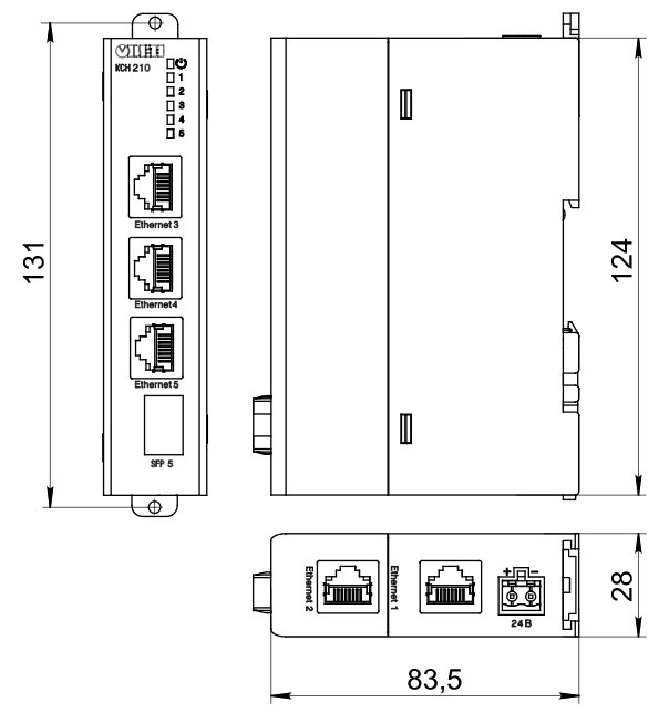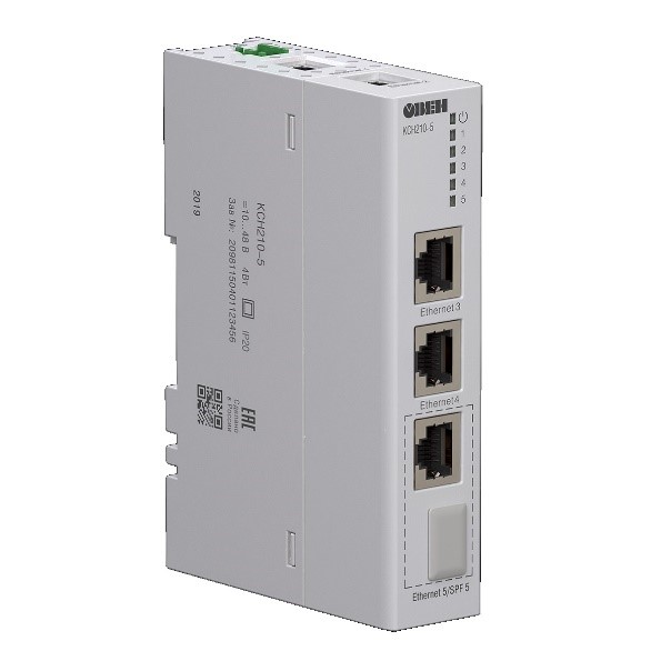 КСН210-5 – надежный простой бюджетный 5-портовый неуправляемый промышленный коммутатор (свитч). Предназначен для соединения узлов в пределах одного или нескольких сегментов сети. Поддерживает питание промышленного стандарта 10…48 В постоянного тока, монтируется на DIN-рейку, имеет расширенный диапазон рабочих температур (-40…+55 ⁰C).